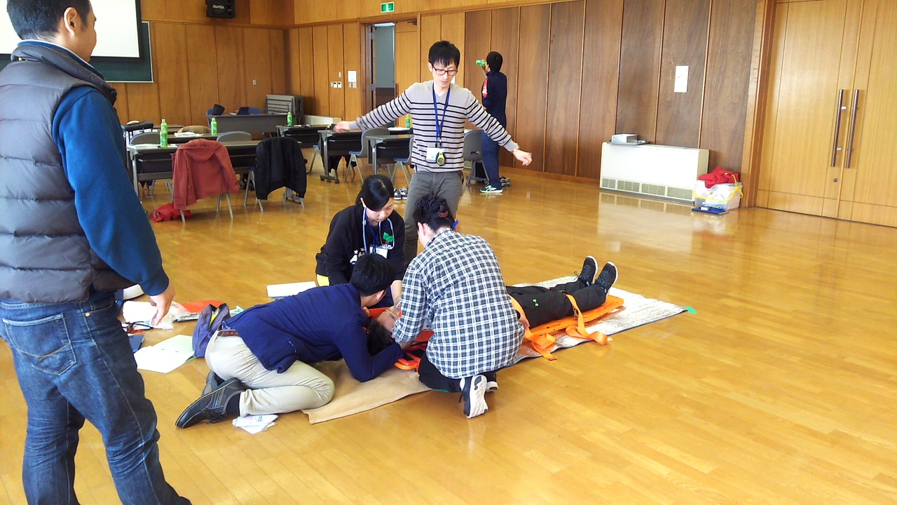 あいにく肌寒い雨天の中での開催となってしまいましたが、16名の受講者全員が、外傷に対する知識を習得するため真剣に取り組んでいました。